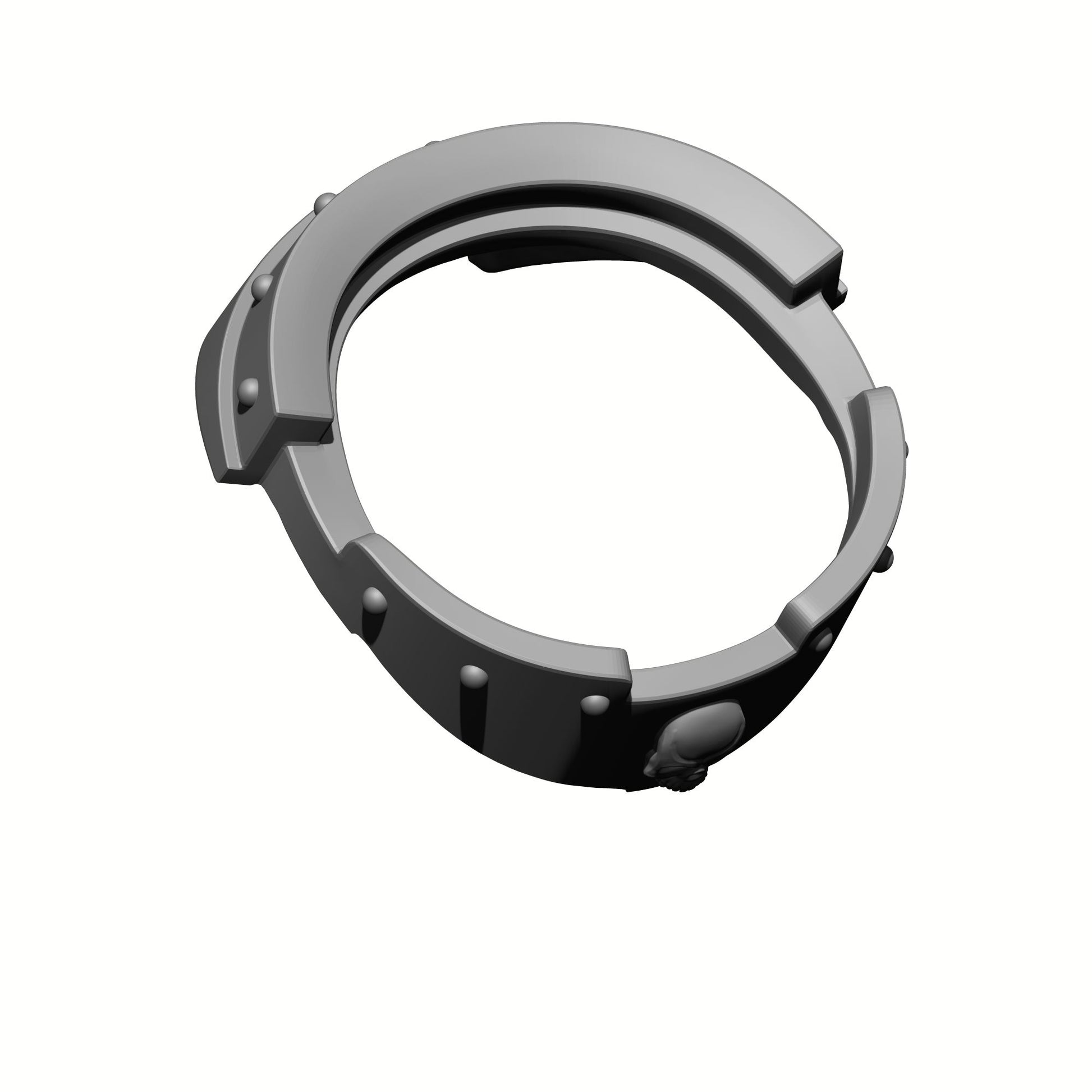 This Gorget with Skull and Rivets is designed to fit McFarlane Toys Space Marine* Action Figures. This pauldron is inspired by the Mark III: Iron armor.